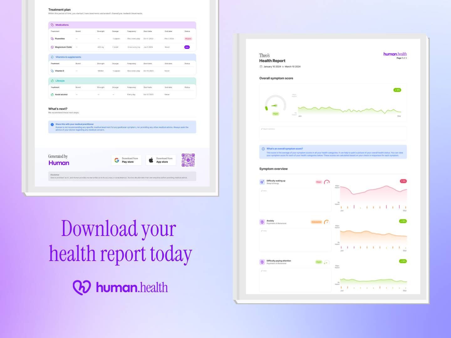 Disclaimer: Human Health is a patient-led tracking platform and does not provide medical advice, diagnosis, or treatment. Always talk to a qualified healthcare provider about your symptoms and care options.