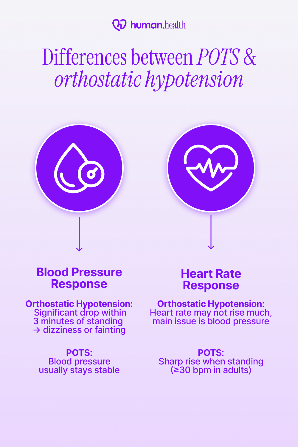 Although POTS and Orthostatic Hypotension share some symptoms, the way they affect blood pressure and heart rate sets them apart.