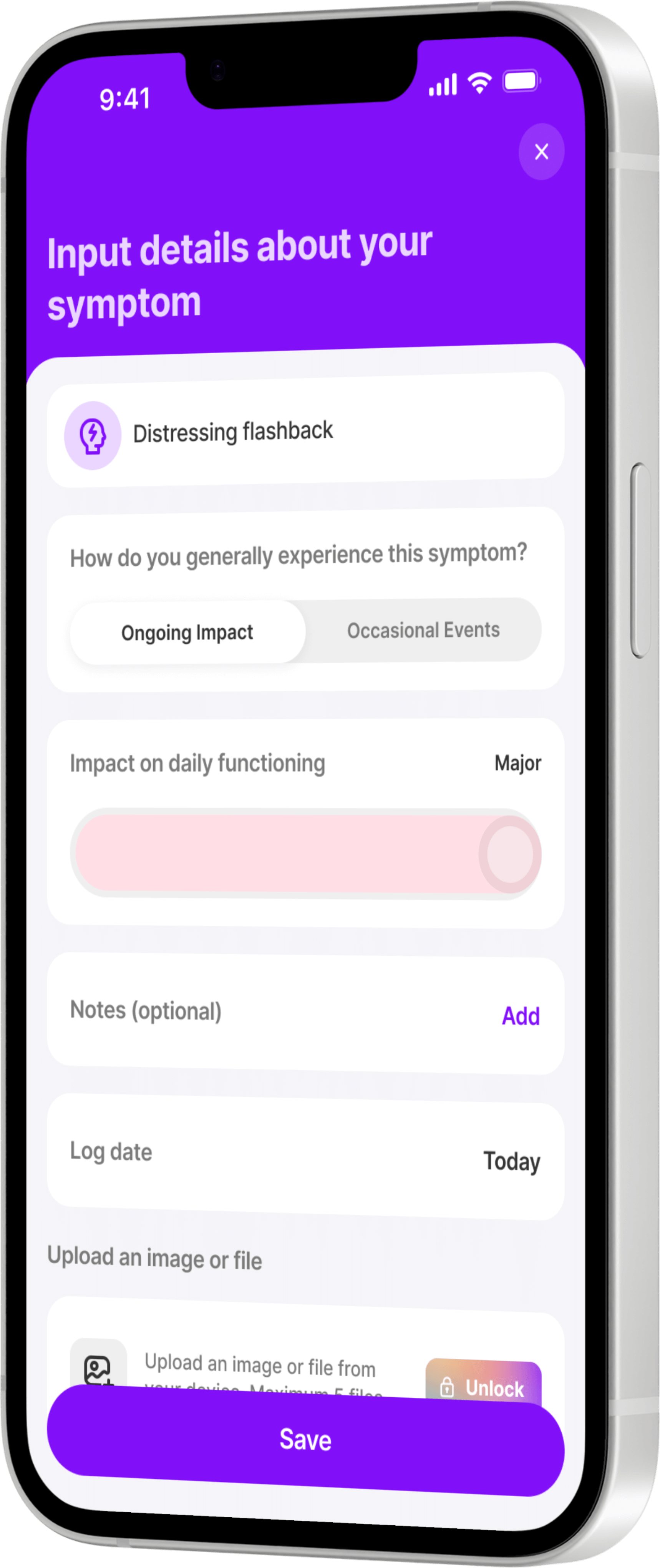 Add PTSD to your medical history and start tracking symptoms relevant to you.