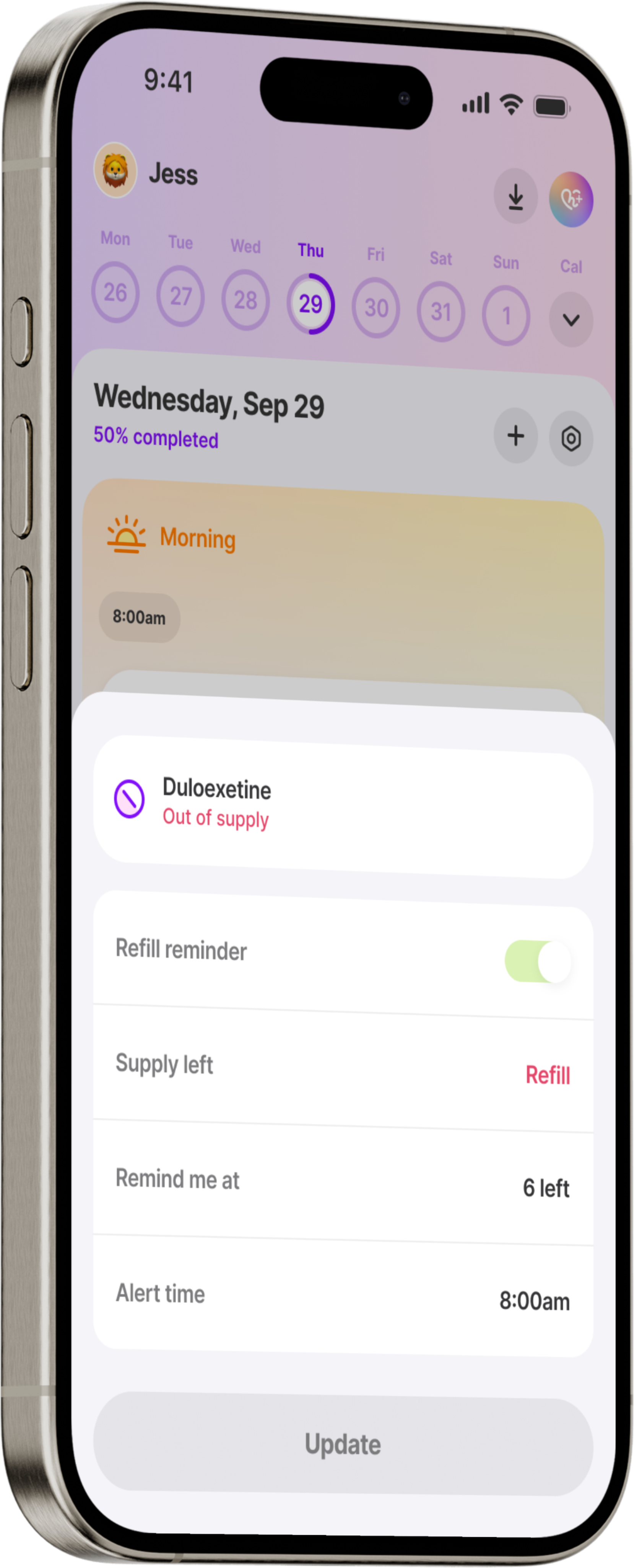 You can set reminders for each treatment at the times that make sense. Notifications appear on your phone, and you can customize the message so it’s clear which treatment it’s for, such as “Morning vitamin D” or “10am physiotherapy exercises.” This helps you stay consistent even when managing multiple approaches.