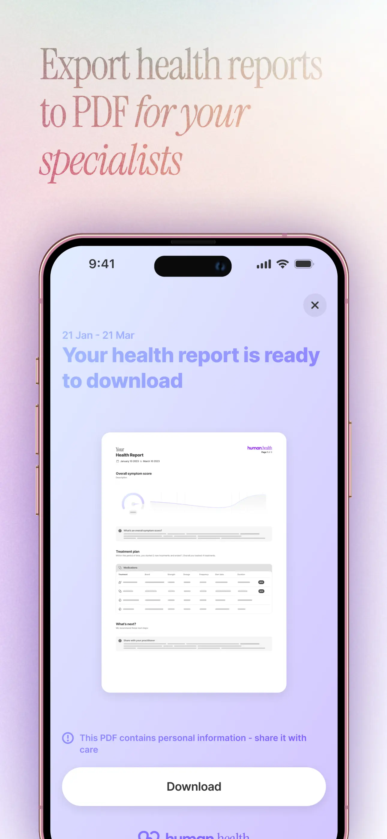 Use the results as a starting point to track symptoms like pain, joint instability, or fatigue in the Human Health app and discuss them with a medical professional.